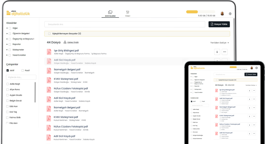 Çalışanlarınıza ait tüm verileri tek bir noktadan yönetin. Bilgilere bilgisayar, tablet veya telefon üzerinden anında erişim sağlayın.
