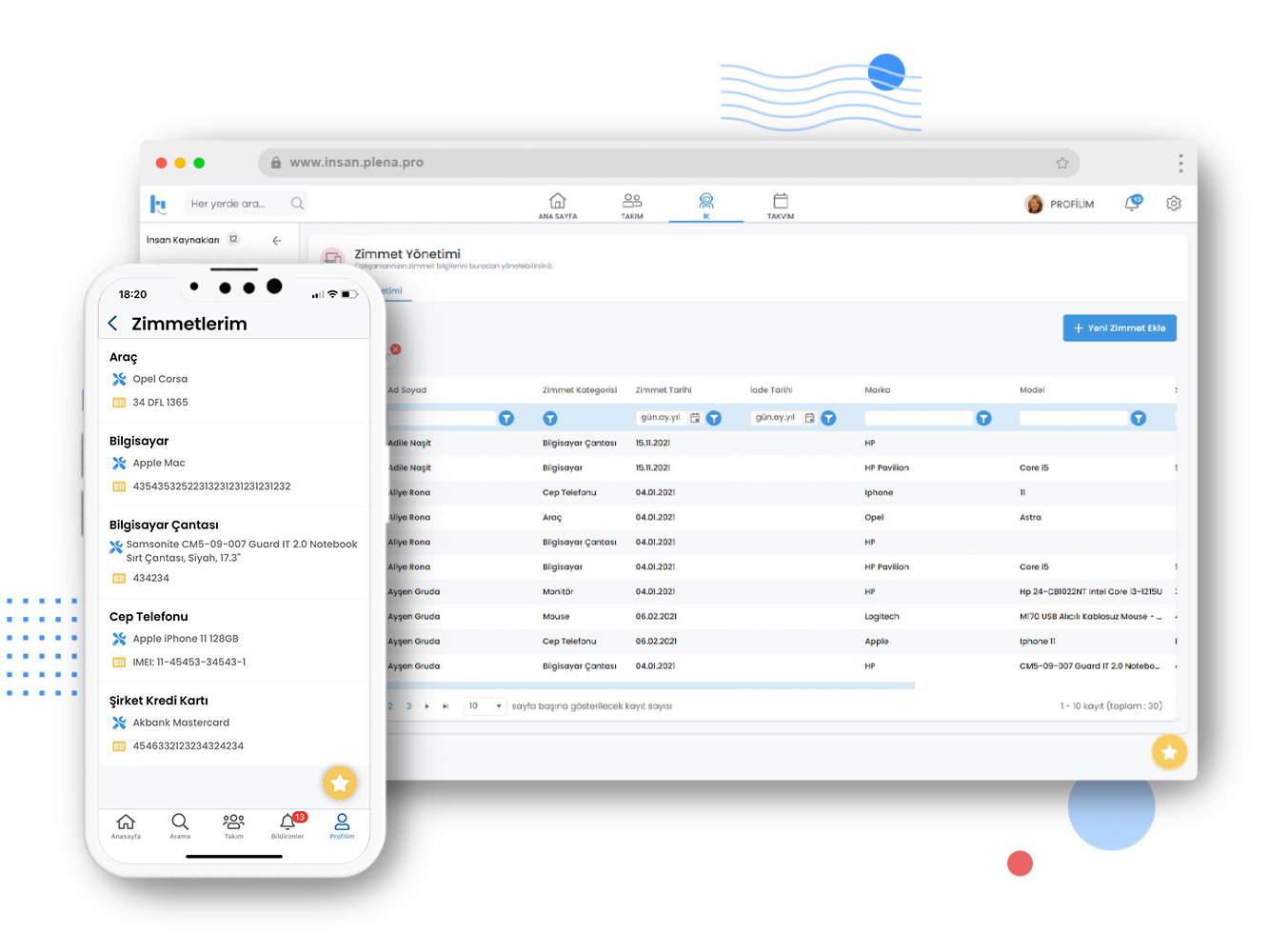 Çalışanlarınıza verdiğiniz telefon, araç, bilgisayar gibi demirbaşların kayıtlarını tutun ve takip edin. Çalışan bazında demirbaşlarınızı anlık olarak raporlayın.