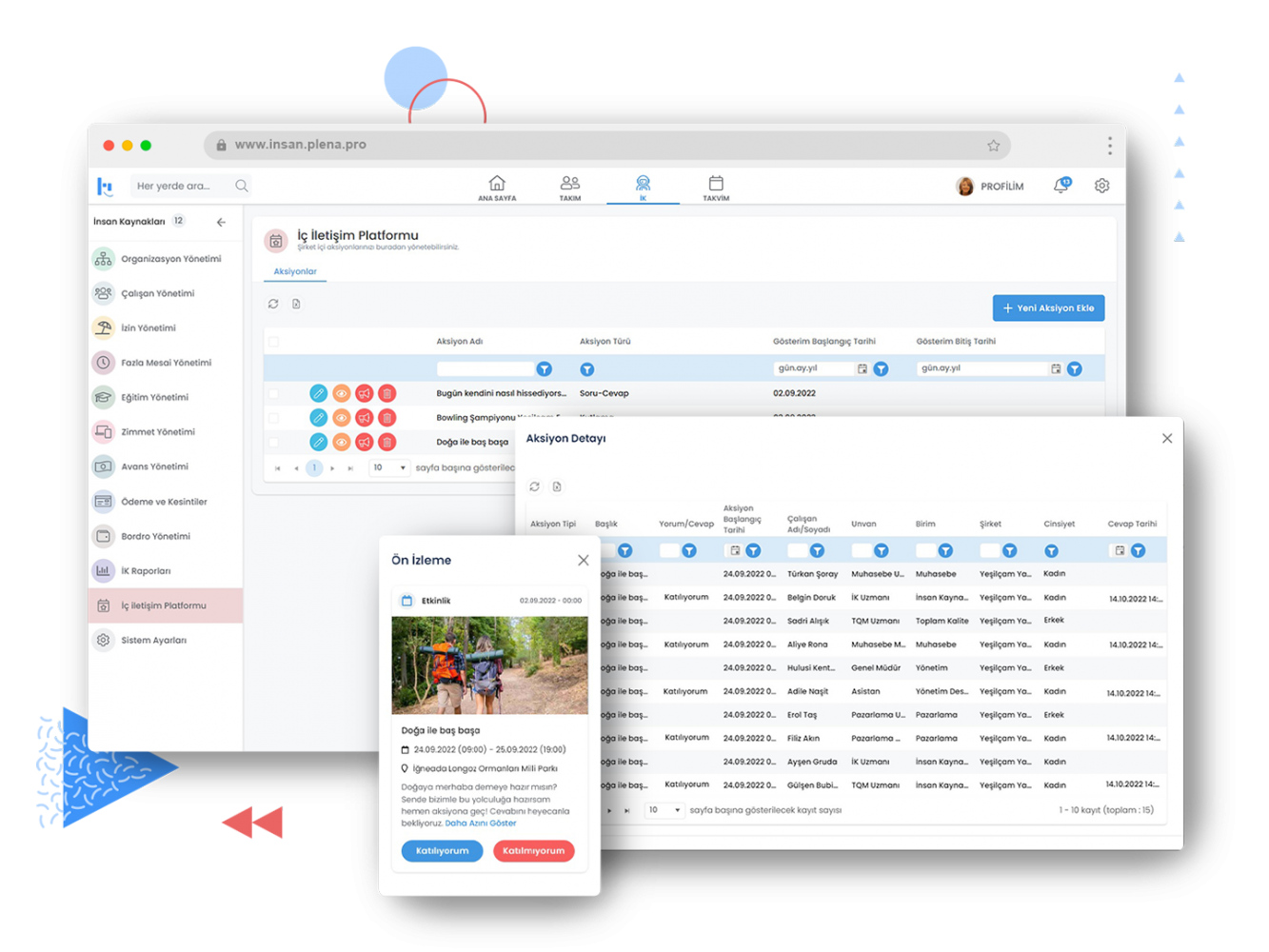 Etkinlik, bilgilendirme, anket ve soru-cevap gibi aksiyonları duyuracağınız iletişim portalınızı yönetin. Çalışanlarınızın bu aksiyonlara interaktif olarak katılımını sağlayın.