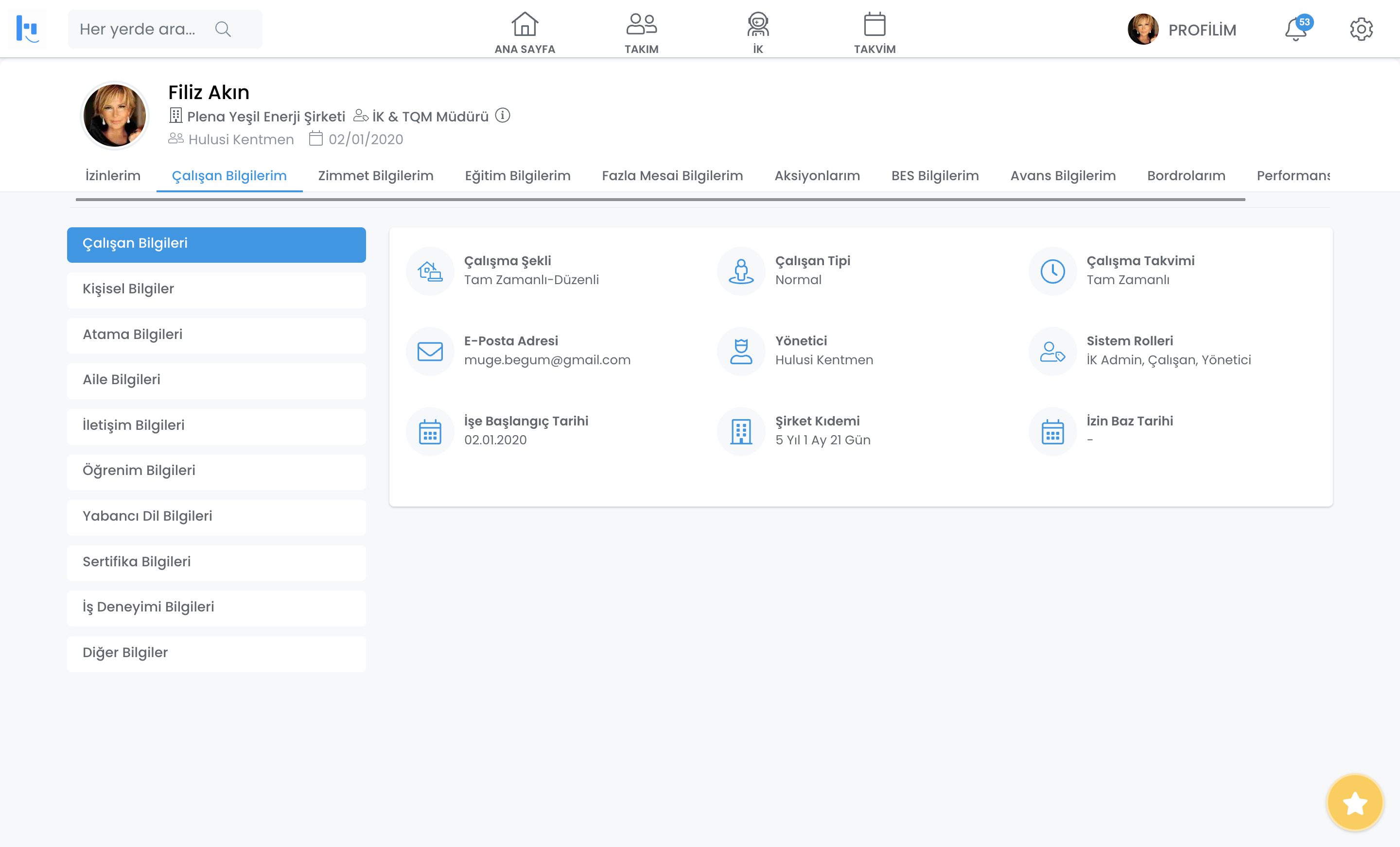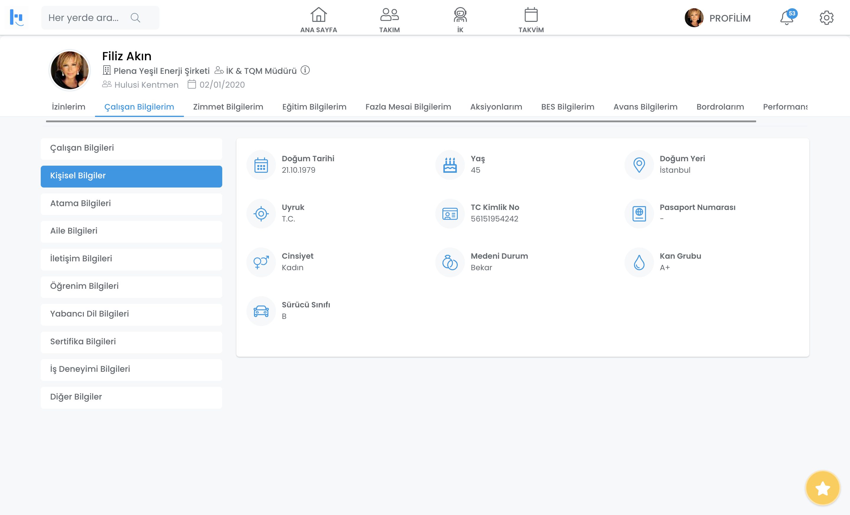 Ana sayfa giriş paneli ile tüm İK süreçlerinizi anlık olarak izleyin. Takvim üzerinden izin, eğitim, doğum günü ve etkinlik gibi aksiyonları takip edin ve planlayın.