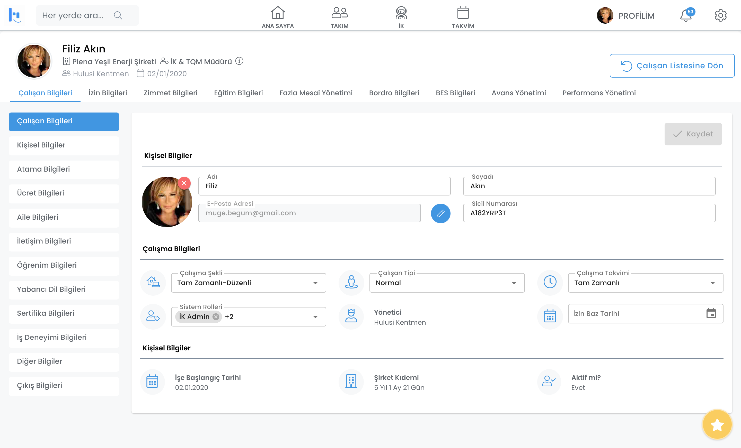 Çalışanlarınıza ait tüm bilgileri tek bir platform üzerinden kolayca yönetin. Bilgilere hızlı erişim sağlayarak süreçlerinizi daha verimli hale getirin.