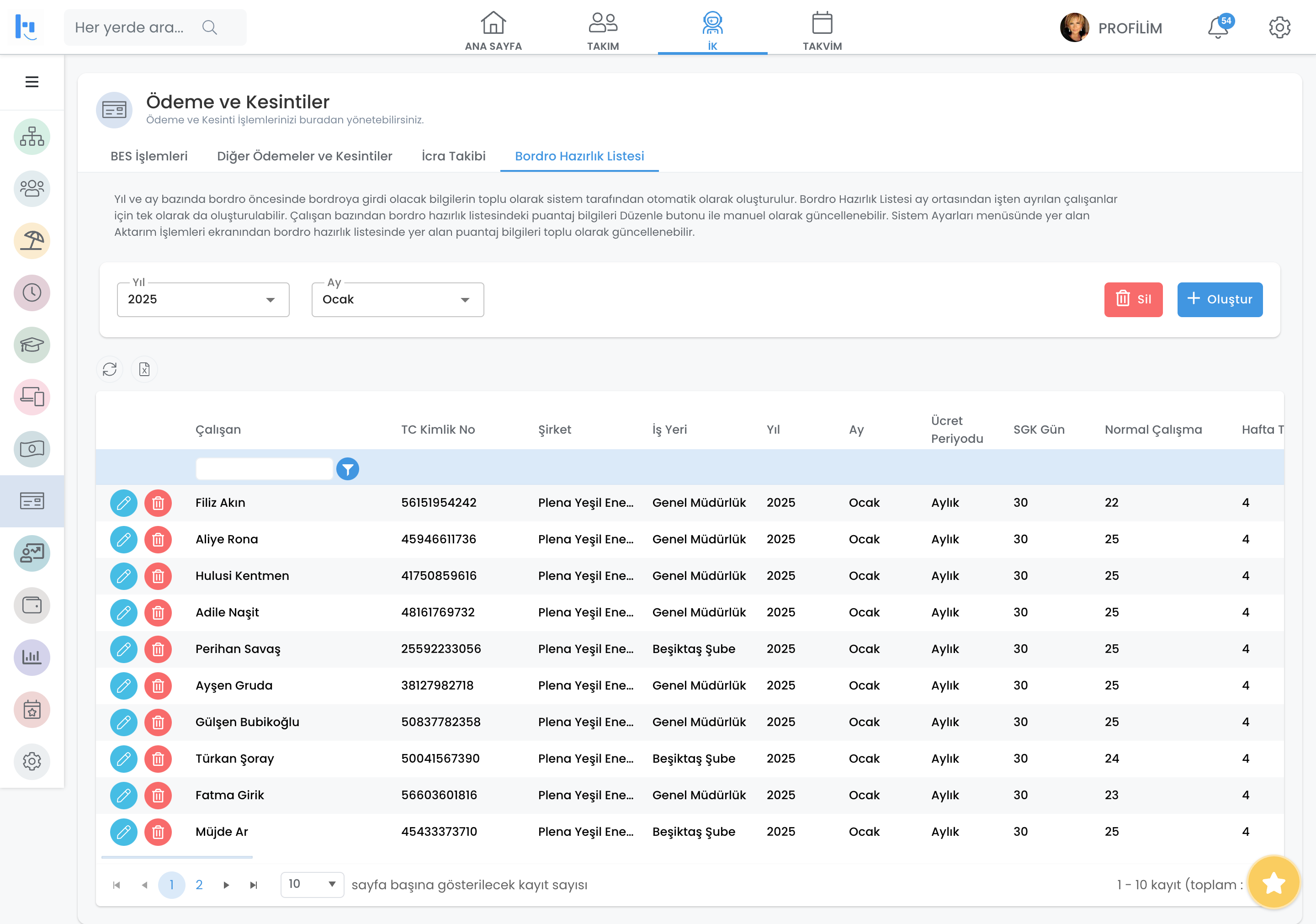 Bordro hesaplamalarında gerekli olan puantaj ve tüm bordro girdilerini içeren hazırlık listesini sistem üzerinden alın. Sistem tarafından otomatik oluşturulan puantaj bilgilerini toplu ya da tek tek güncelleyerek süreçlerinizi optimize edin.