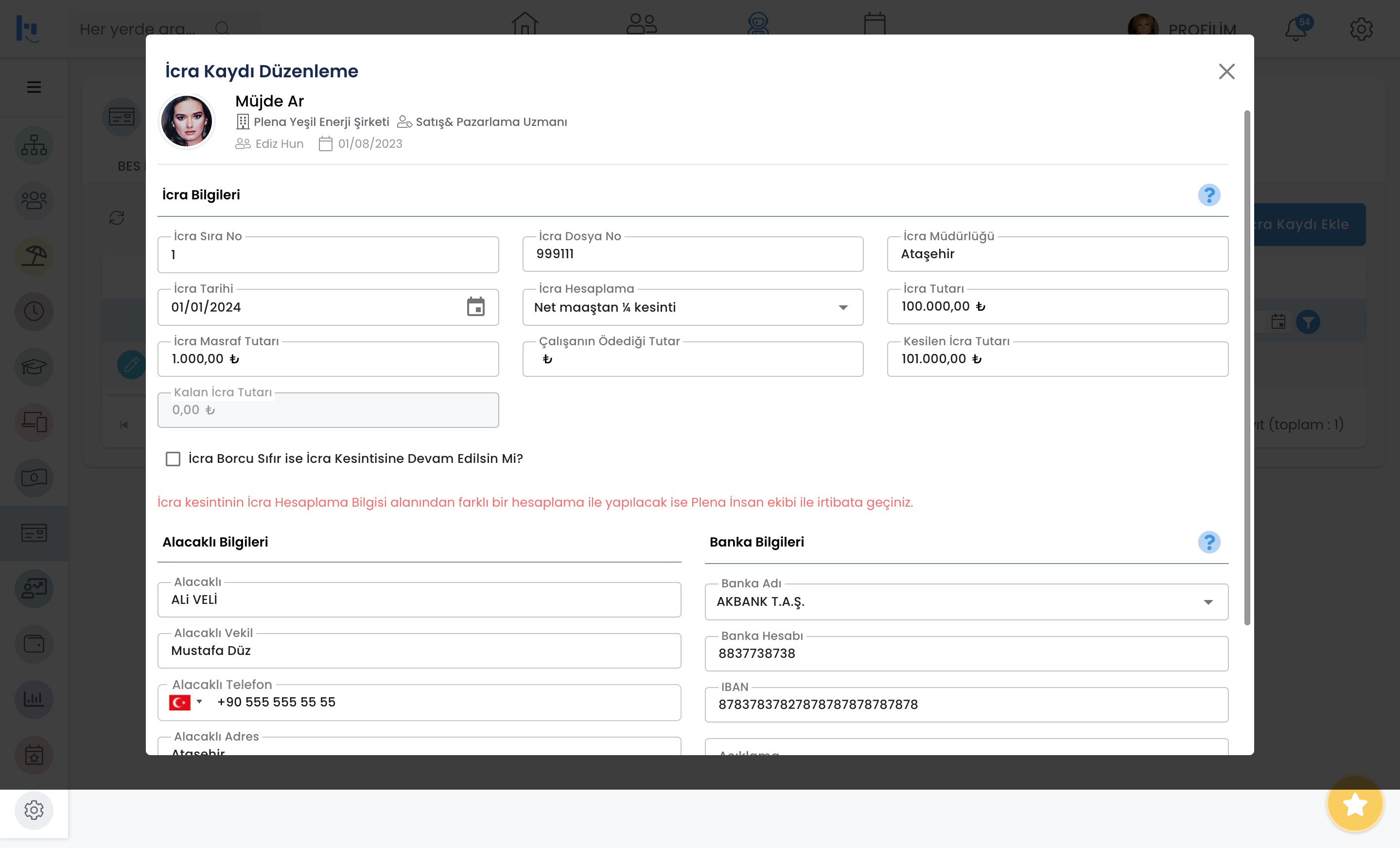 Çalışanlarınıza verilen ek ödemeleri detaylı olarak sisteme kaydedin. Bordroya dahil edilmesi gereken kesinti ve icra işlemlerini yönetin. İcra ödemelerini takip ederek, süreçleri yasal gerekliliklere uygun şekilde yönlendirin.