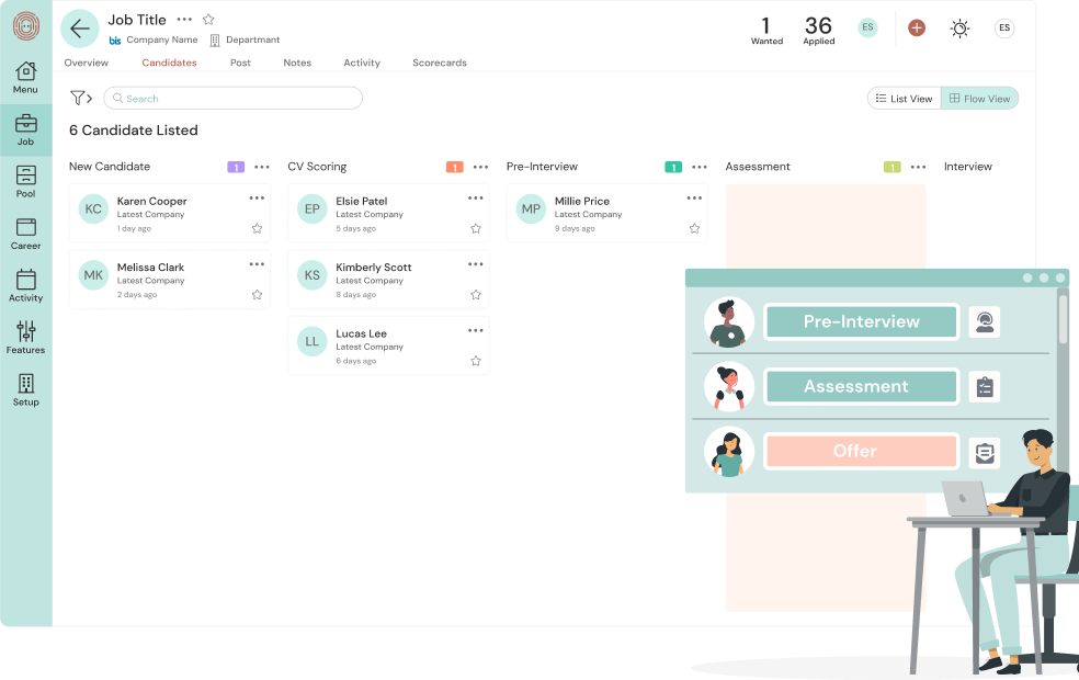 İşe alım sürecini şirketinizin benzersiz iş akışına uyacak şekilde özelleştirmenizi sağlar, böylece aday değerlendirmede verimlilik ve etkinlik sağlar.