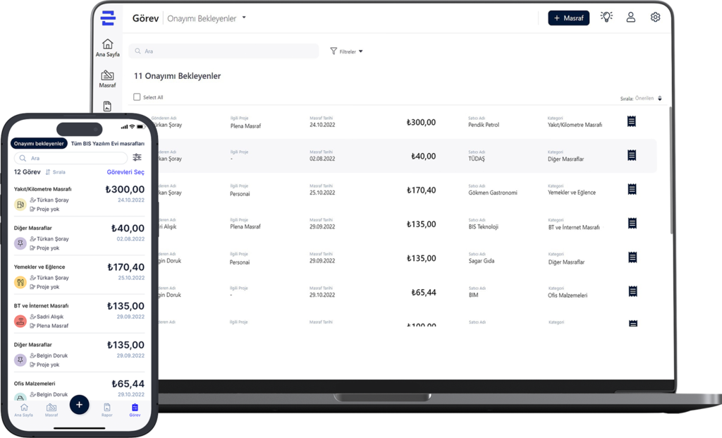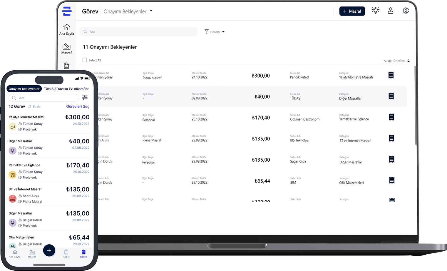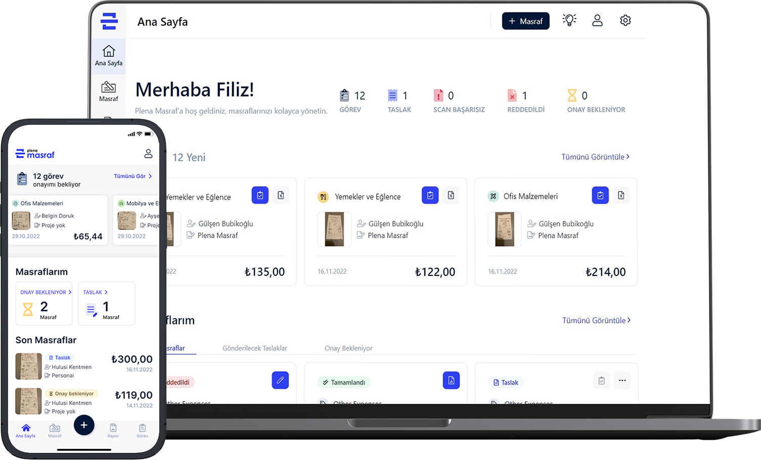 Plena Masraf ile masraf kayıtlarınızı anlık olarak takip edin. Dashboard üzerinden verilerinizi gerçek zamanlı görüntüleyin, kapsamlı raporlarla detaylı analizler oluşturun ve yöneticilerinizle kolayca paylaşın.