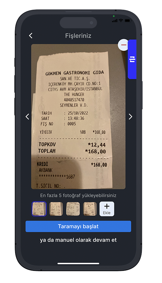Fiş ve faturalarınızı yükleyin, Plena Masraf gerisini halletsin! OCR teknolojisiyle verilerinizi yüksek doğrulukla otomatik olarak kaydedin. Manuel hataları ortadan kaldırın, tek tıkla sürecinizi hızlandırın ve zaman kazanarak işinize odaklanın.